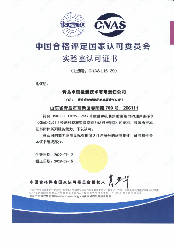 檢驗(yàn)檢測機(jī)構(gòu)資質(zhì)認(rèn)定證書(CMA)